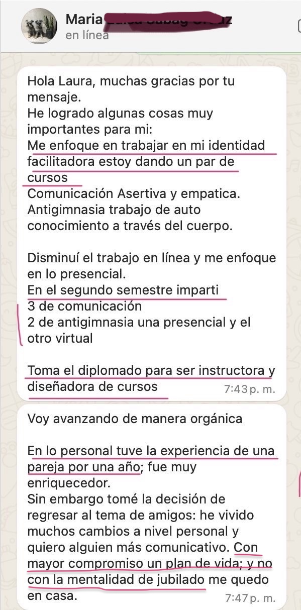 Aquí no hay Bla... Bla… Bla…. La información es precisa y concisa con efectividad garantizada (el promedio de logros entre las participantes del grupo es un 80%)